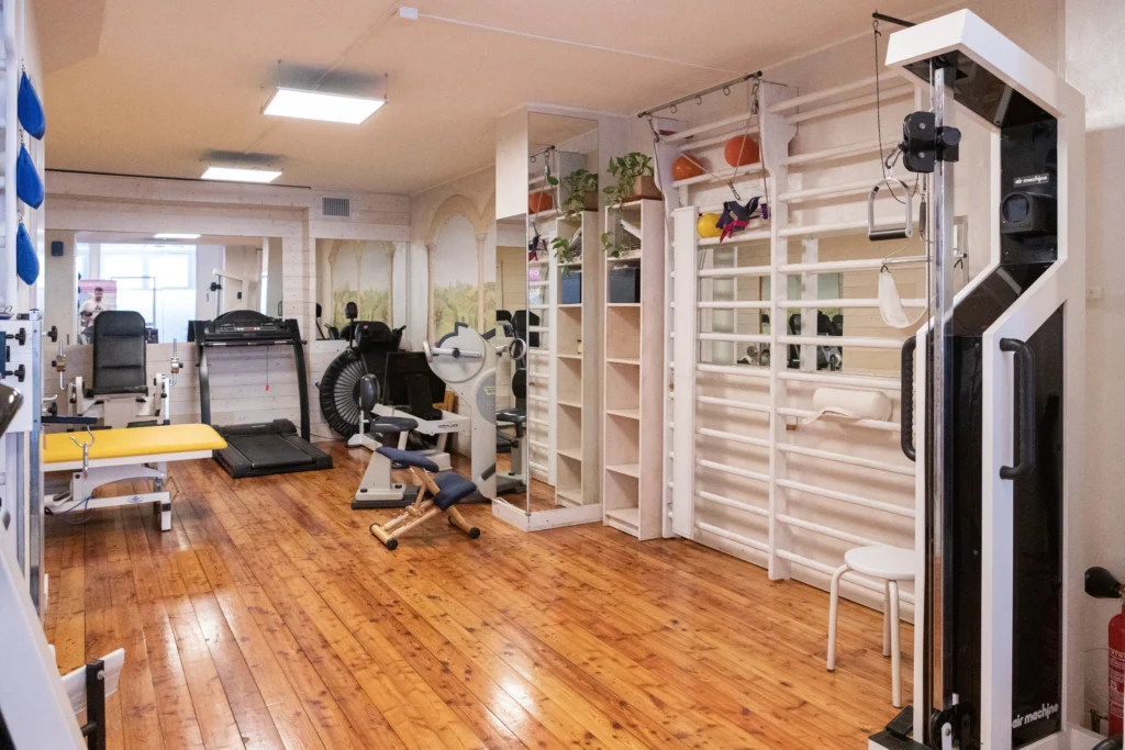 I trattamenti si svolgono in ambienti dedicati, anche con l’ausilio di attrezzature da palestra per il recupero funzionale.